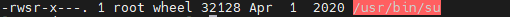 위 설정은 setuid를 설정하여 파일 소유자의 권한으로 실행 파일을 실행하도록 하는 비트 설정입니다.