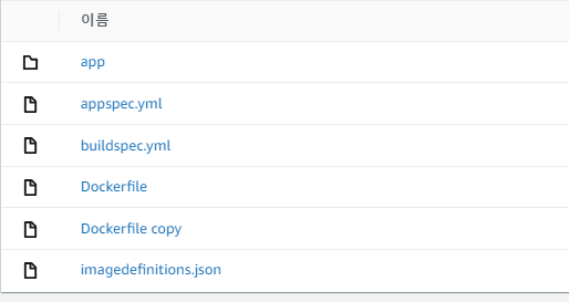추가로 중요한 것은 imagedefinitions.json 입니다. 이 파일은 정의되어 CodeCommit 리포지터리에 같이 있어야 합니다.