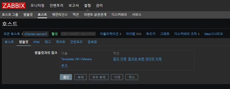위 설정을 하면, Zabbix Server에서 VMware정보를 수집하기 위한 준비가 되었습니다. 이제 관리하고 있는 vCenter Server를 연동해서 성능 정보를 가져와야 합니다.
