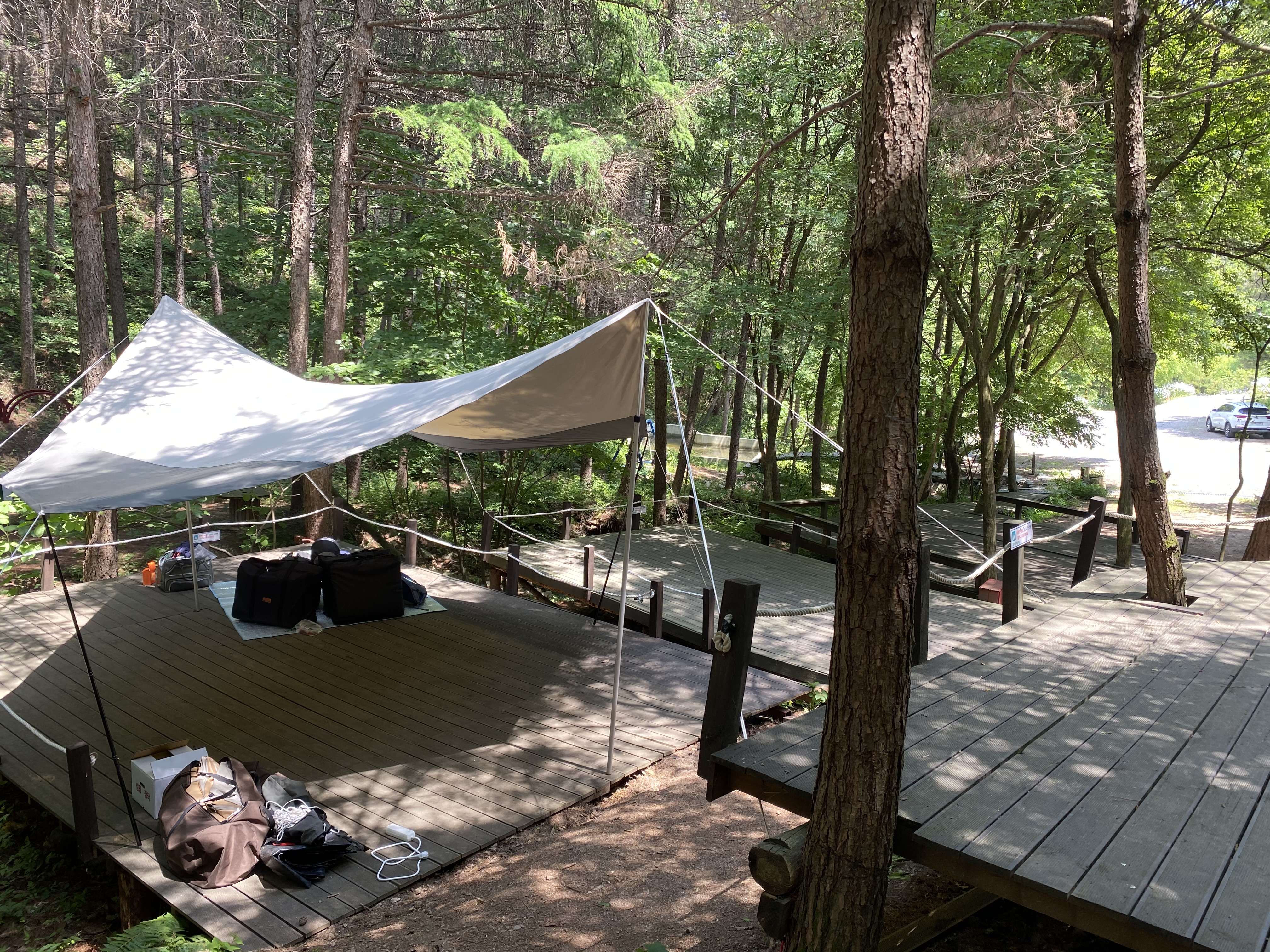 일요일에 모든 캠퍼들이 철수하고 우리만 남은 캠핑장은 데크 이곳저곳을 자유롭게 사용하였습니다. 다만 캠핑 예약 시 위치 선정은 정말 중요합니다. 사전 조사를 확실히 하고 예약을 해야 한다는 것을 느끼게 되었습니다. 캠핑 중 이사(사이트 이동)는 정말 큰 노동력을 필요로 합니다..