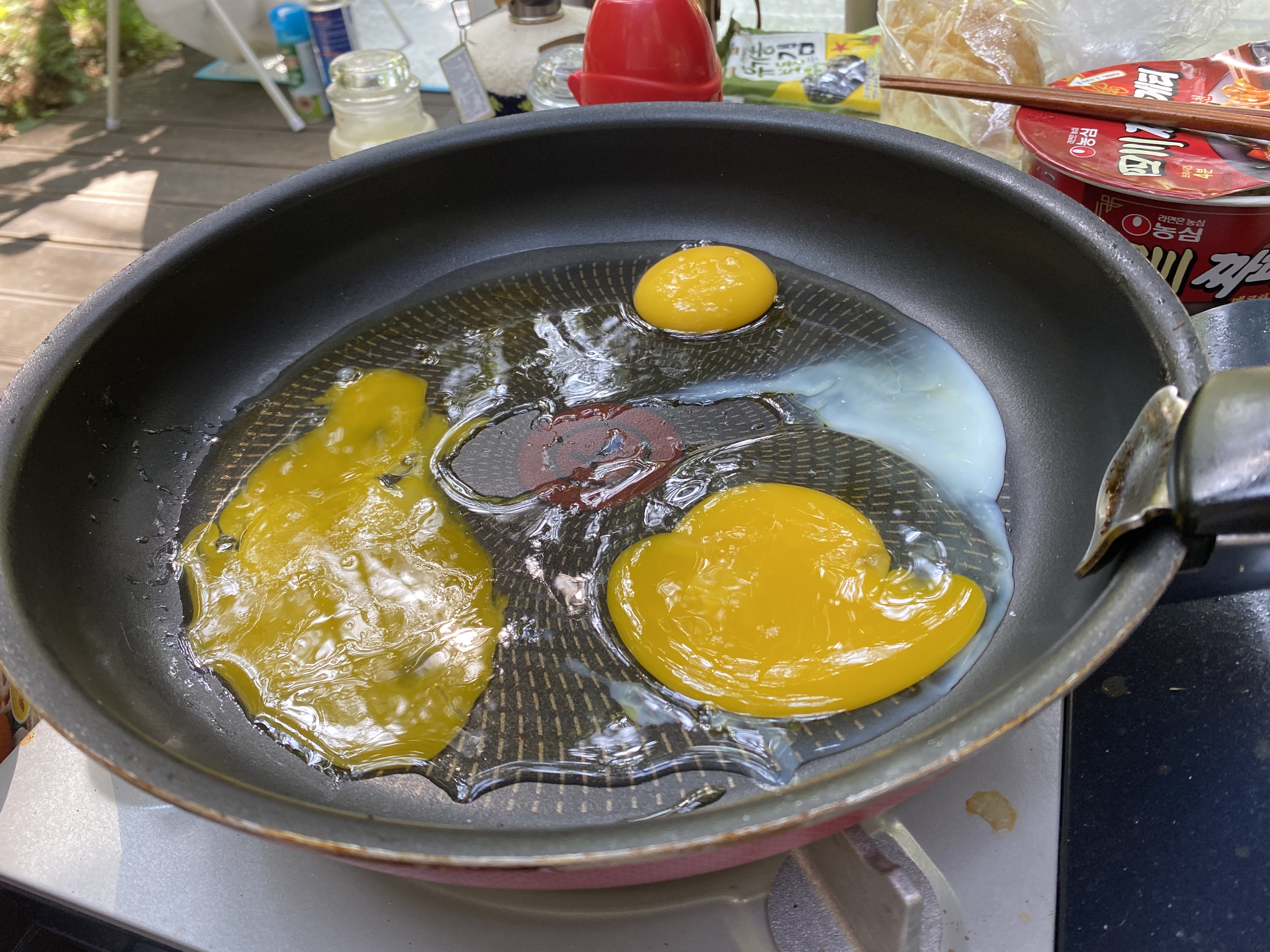 캠장님께서는 정말 친절하십니다. 직접 키우시는 닭이 그날 낳은 달걀 3개를 주셨습니다. 반숙으로 해야 고소함을 느낄 수 있다고 하셨지만 2개는 실패.. 그래도 정말 맛있었습니다. 삼시세끼 촬영하는 느낌이었어요.