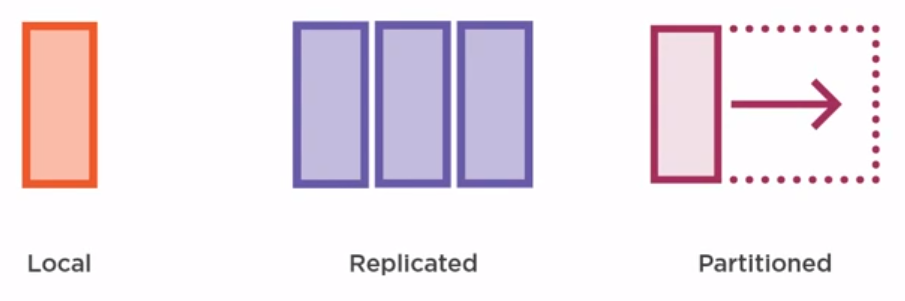 - 데이터는 노드간에 균등하게 분할된 분산 인 메모리 저장소 생성