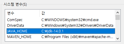 Windows 키 + r 눌른 후 실행창에 "sysdm.cpl ,3" 입력, 환경변수항목에 아래와 같이 설정