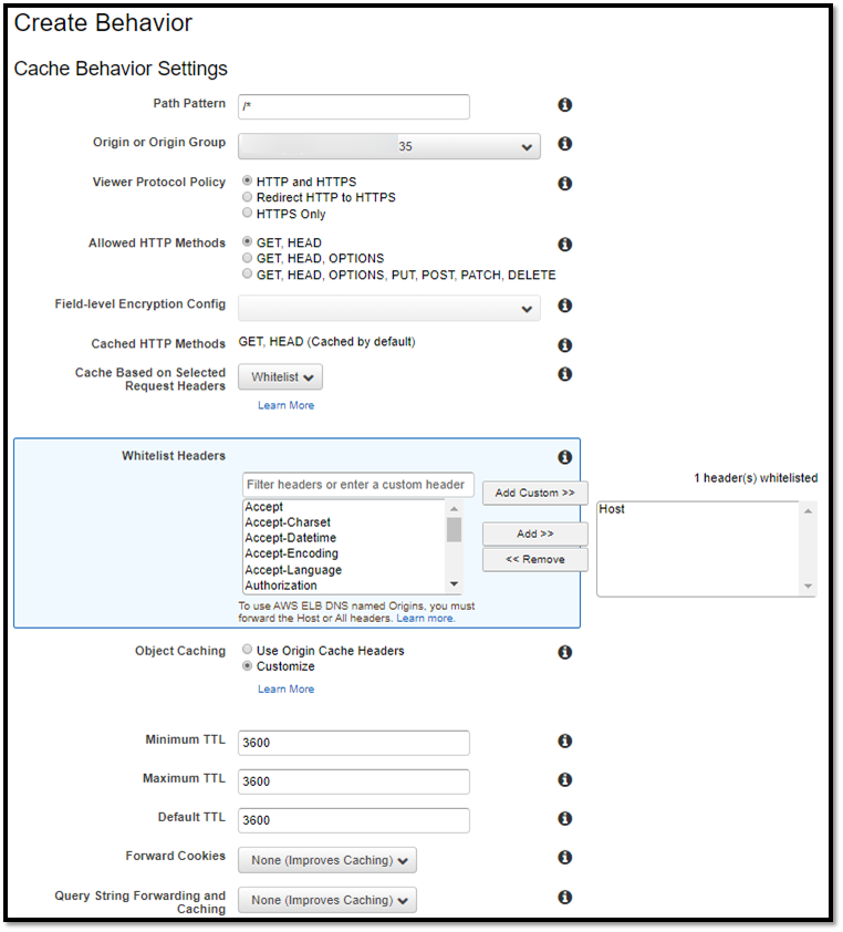 - Object Caching는 "Customize"선택 후 TTL을 3600 정도로 둔다 (600으로 해도 무관)