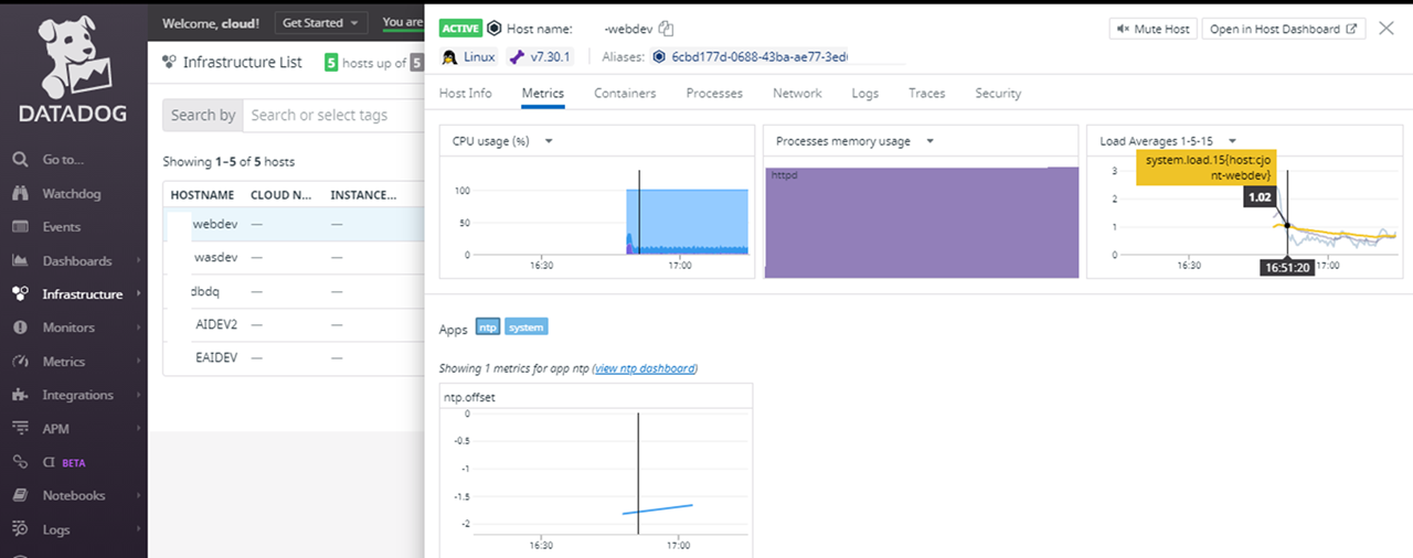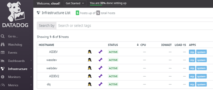 3. Agent 설치가 완료되면 Datadog "Infrastructure"에 정상적으로 Geathering 되는 시스템 확인