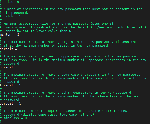 [root@localhost ~]# vi /etc/security/pwquality.conf