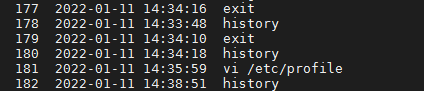 HISTTIMEFORMAT="%F %T " (%T뒤에 스페이스 붙여야 시간과 명령어가 떨어져서 보임)