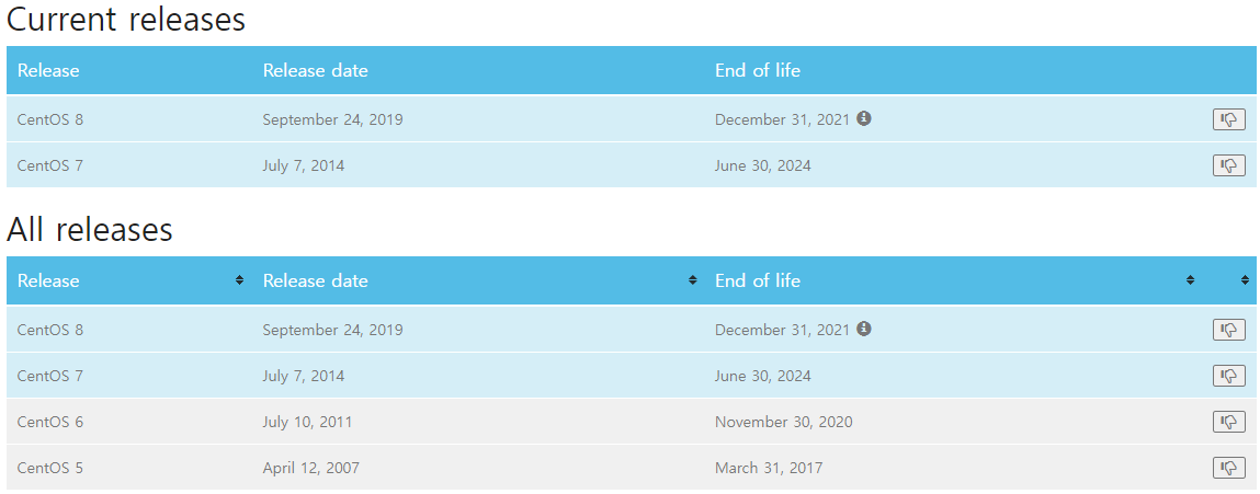 Red Hat Enterprise Linux에서 파생된 리눅스 배포판 CentOS가 2021년 12월 31일 기준으로 수명이 다 되었다고 합니다.