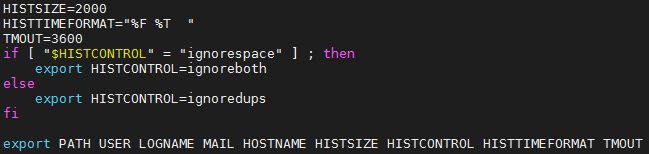 export PATH USER LOGNAME MAIL HOSTNAME HISTSIZE HISTCONTROL HISTTIMEFORMAT TMOUT
