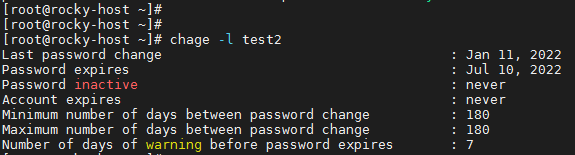 # chage -l 사용자ID (사용자ID에 대한 패스워드 정책 조회)